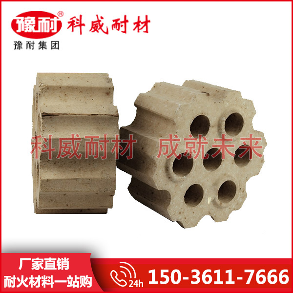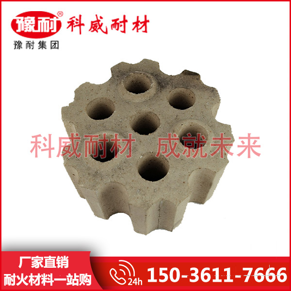 格子砖是目前被世界炼铁界广泛认同和接受的一种热交换能力强,蓄热面积大,通气顺畅,阻力小等诸多优越热工特性的载热蓄热体。格子砖是一种传热介质,主要用在热风炉蓄热室中上部,起蓄热作用。在把冷风加热成热风的过程中,起着极其重要的作用。 热风炉格子砖的特点:体积稳定性好,高温荷重蠕变性能优良,高密度低气孔率。 热风炉格子砖的用途:格子砖主要用在热风炉上,当热风低于900℃时,一般选用粘土砖;当风温高于900℃时, 格子砖则采用高铝砖,莫来石砖,硅线石砖和硅砖等。