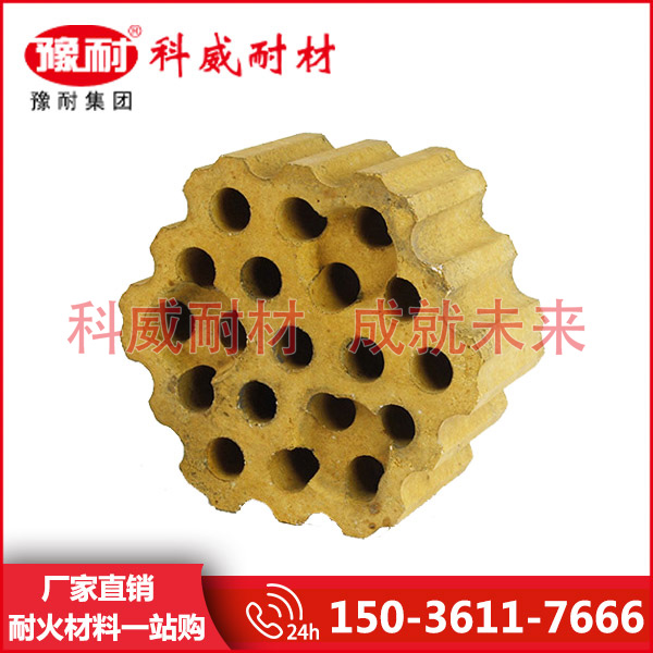 现代高炉采用蓄热式热风炉,热风炉是一组格子砖堆砌起来的庞大的高炉鼓风加热设施。 河南格子砖作为高温热量的载体,其工作原理是先燃烧煤气,用产生的高温烟气加热蓄