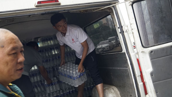 由于灾区的道路还没有完全通车,并且没有信号,经过一个多小时的边走边问,终于到达宋楼临时村支部,和村支部工作人员沟通过后马上把救灾物资存放在临时仓库中。
